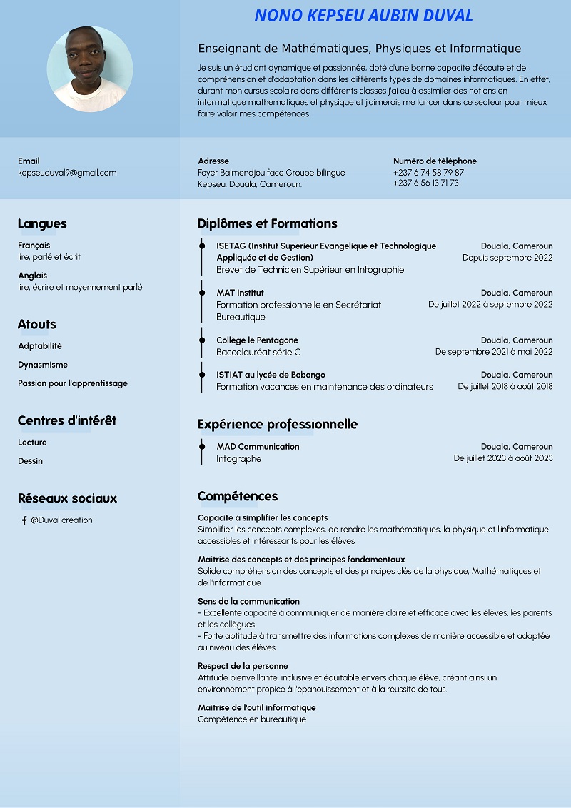 - Langues: Français (natif), Anglais (Courant)